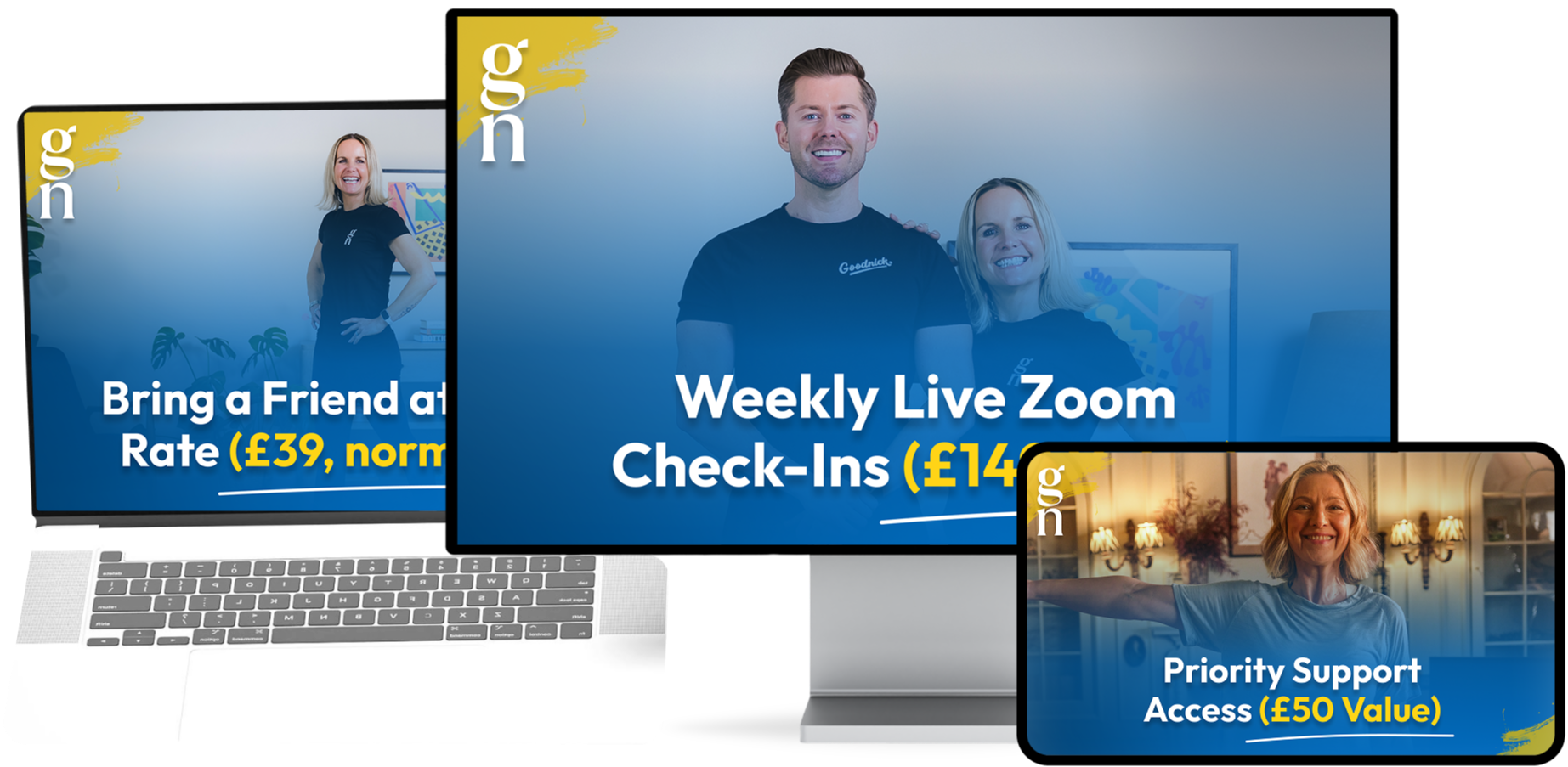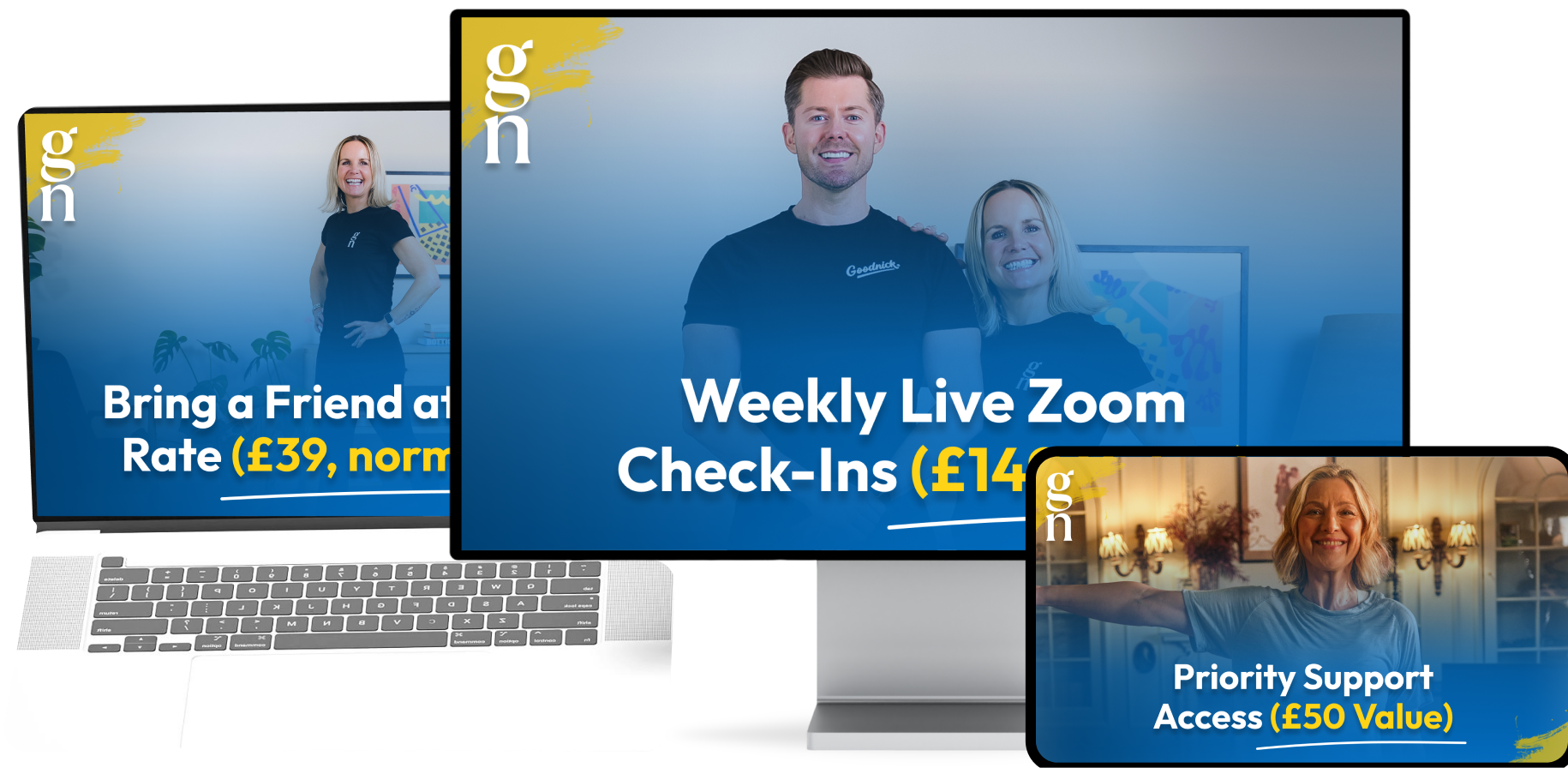 I am very wary of the many fitness plans for older women advertised on social media, having been caught out in the past. Goodnick is genuine, supportive and easy to ask questions. The classes are progressive and very easy to fit into the day or catch up on if you miss one. You are accountable within the small group doing the classes at the same time, which gives us incentive and encouragement, whatever health issues we may have. Highly recommended